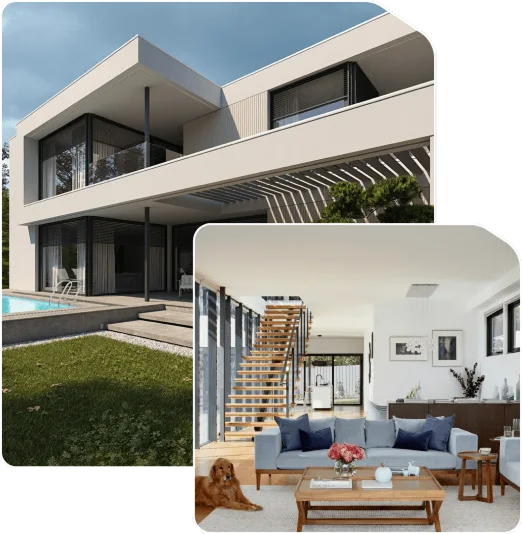 - Outdoor spaces that extend daily living toward the waterfront setting